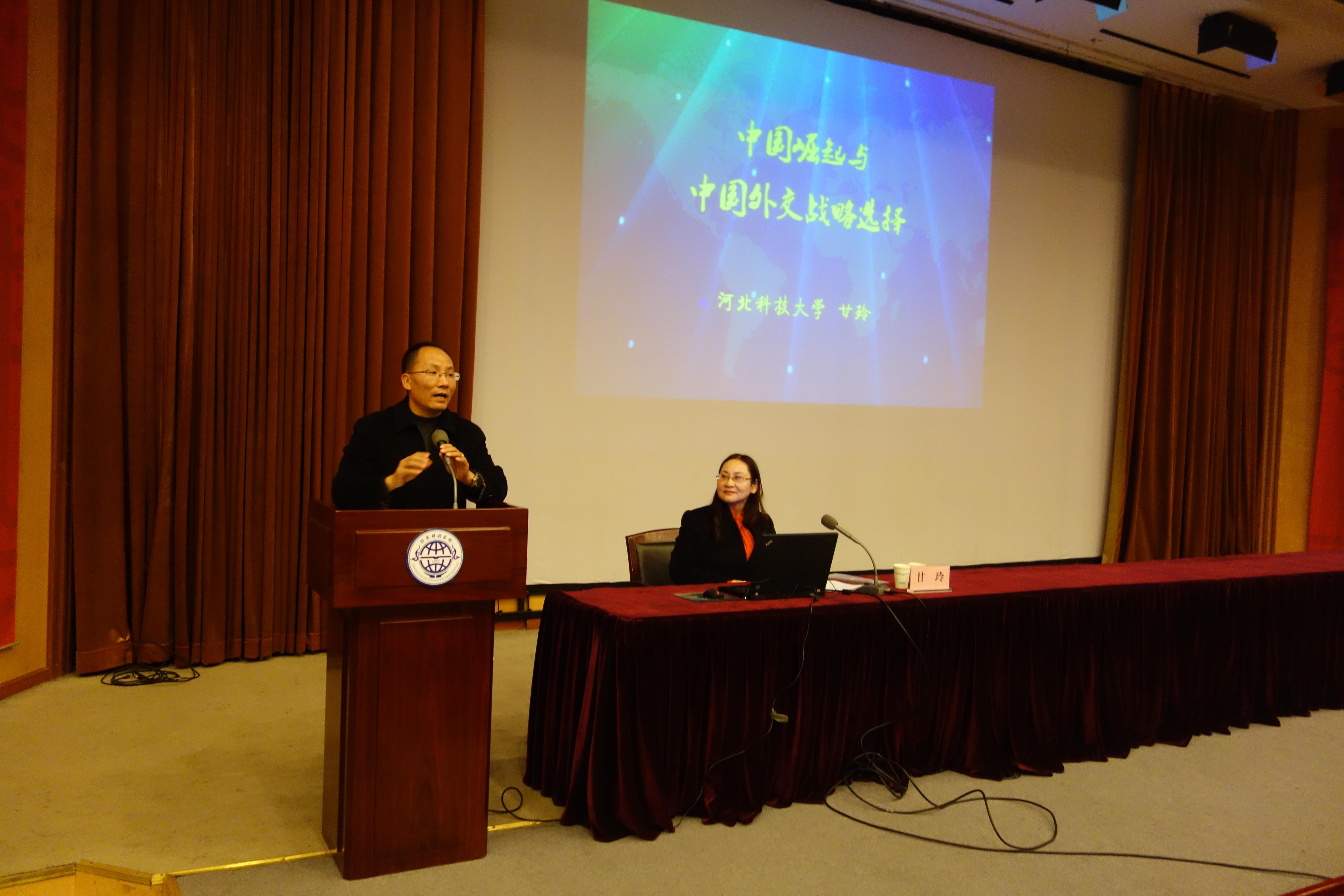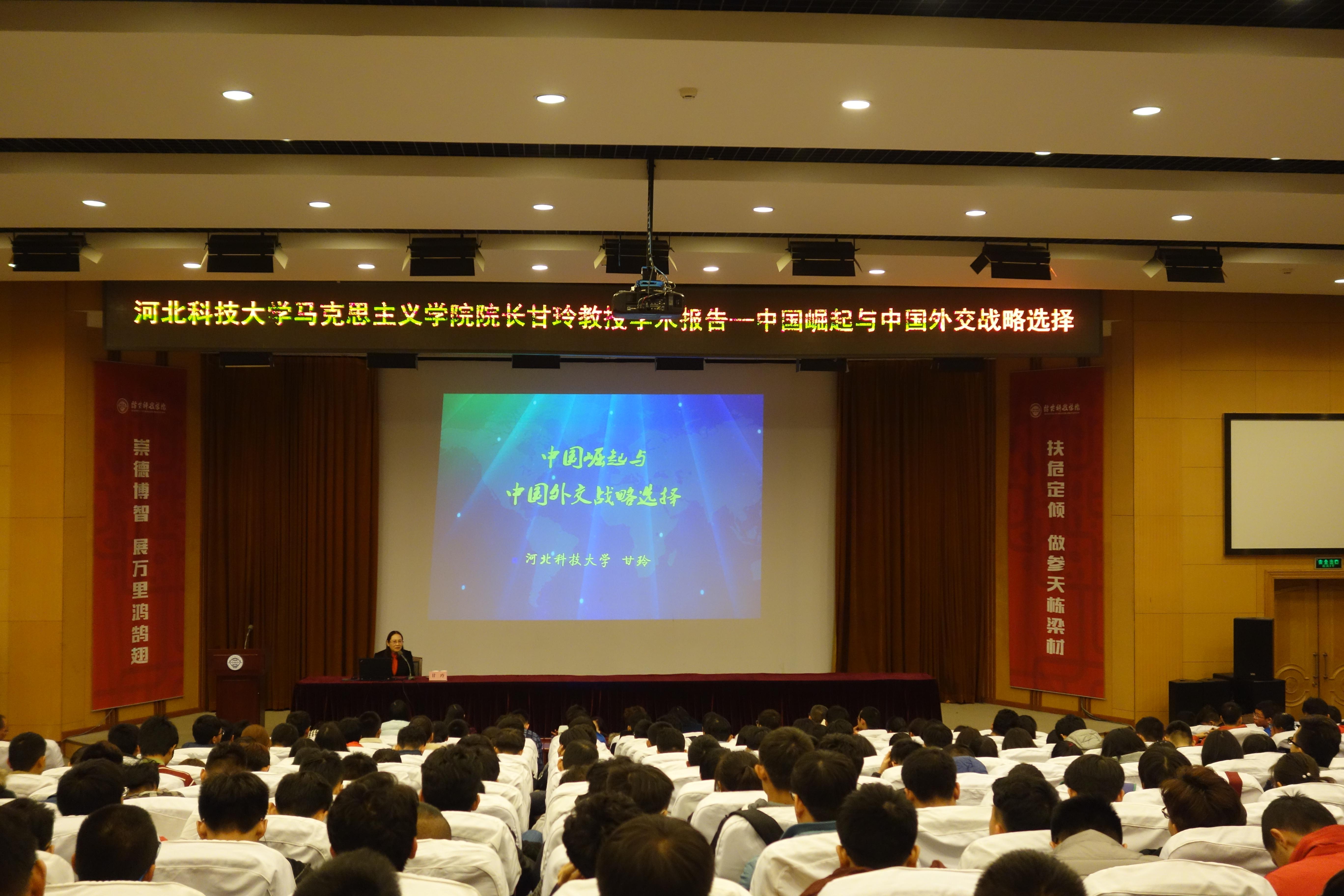 2016年11月4日,应思政部邀请,全国高校思政课教学指导委员会委员、河北科技大学新葡萄8883官网amg院长甘玲教授在图书馆报告厅给我院400余名师生作了题为“中国崛起和中国外交战略选择”的时事报告。报告从中国崛起面临的形势与挑战、中美两大国的碰撞与竞争、中国外交从危机管理到战略推动三个方面,深刻解析了中国和平发展所面临的复杂严峻的国际形势和我们积极主动的应对战略,报告站位高、思路清、内容丰、案例精、分析透,使听讲者深受教益。