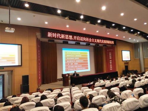 为进一步深入学习党的十九大精神,全面领会习近平新时代中国特色社会主义思想,2017年11月9日下午,思想政治理论课教研部特别邀请国家行政学院经济学部公共经济教研室主任、经济学博士、硕士生导师、樊继达教授来到防灾科技学院,以“新时代新思想,开启迈向社会主义现代化强国新征程”为题,为学院学生做了精彩的学术报告。思想政治理论课教研部全体教师参加了报告会。报告以详实的资料和丰富的案例作为依托,向广大师生阐释了“新时代”的理论内涵以及国情、社情、党情的深刻变化,鞭辟入里地分析了当前我国社会的主要矛盾的变化,樊教授结合自身的学术专长对不平衡不充分发展状况的解决进行了有针对性的分析。报告全面系统地阐释了习近平总书记在十九大报告中的新思想、新论断,深入浅出,获得了广大师生的一致好评。