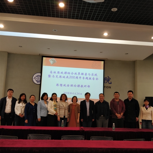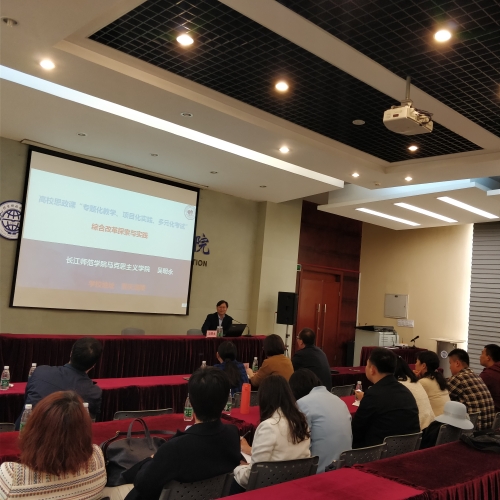 2018年4月24日,思政部邀请长江师范学院新葡萄8883官网amg院长、法学博士、硕士生导师、吴明永教授为新葡萄官网思政课专兼职教师在图书馆多功能厅做关于“高校思政课综合改革探索与实践暨马克思诞辰200周年”的专题报告。报告在总结分析当前高校思政课教学教改存在的主要问题的基础上,提出了系统、科学、综合改革的必要性及基本理念、基本思路,并具体详尽地介绍了长江师范学院思政课“专题化教学、项目化实践、多元化考试”综合改革的实施情况和良好的改革成效及社会影响。之后,吴教授还与老师们展开了“纪念马克思主义诞辰200周年”的专题研讨会,就研读马克思主义经典著作,夯实思想课教师的理论功底,做到真学真懂真信真用,是保障思政课教学质量的最关键因素等问题达到一致认识,并就如何促进老师学习马克思主义经典著作、坚定马克思主义立场观点方法、提高马克思主义理论素养提出具体建议。吴教授的讲座对新葡萄官网思政课教师解放思想、转换理念、加强学习,进一步推进思政课教学教改,提升教学质量启发很大。