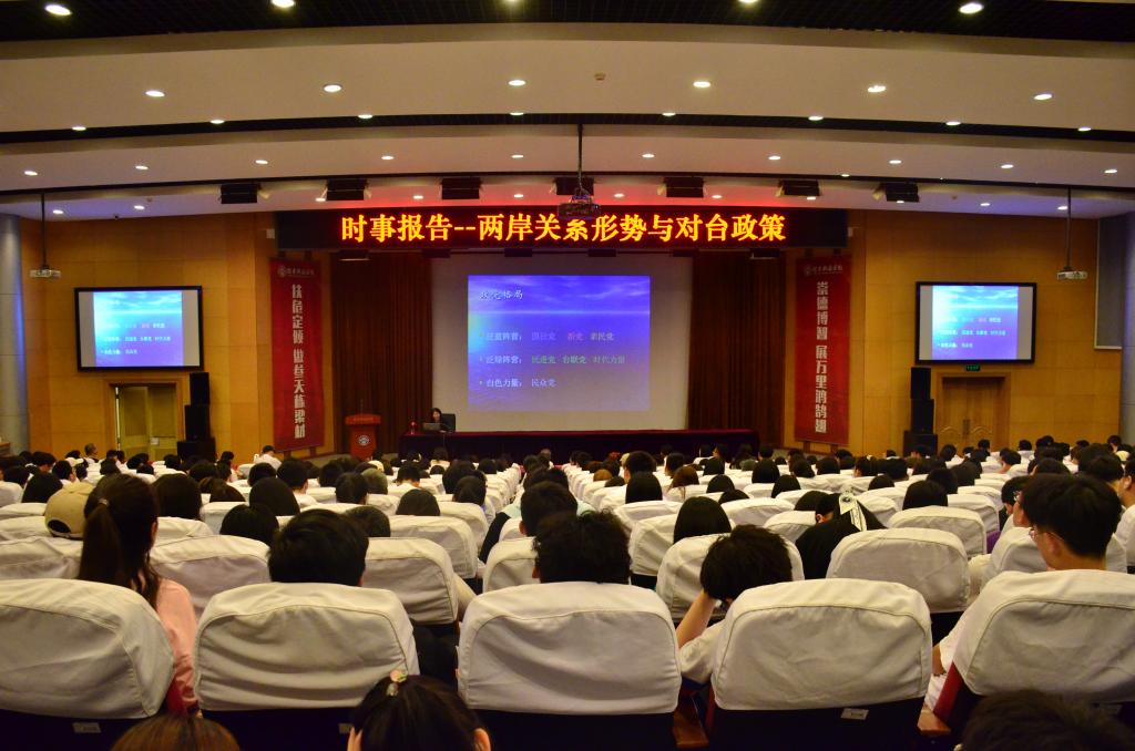 根据教育部办公厅关于印发《高校“形势与政策”课教学要点(2021年上辑)》的通知(教社科厅函〔2021〕10号)和本学期“形势与政策”课的教学计划、“师生同上一堂形势与政策思政大课”的相关安排,5月28日新葡萄8883官网amg邀请中国现代国际关系研究院涉台研究中心主任研究员、国务院台湾事务办公室海峡两岸关系研究中心特约研究员、厦门大学台湾研究院博士生导师谢郁来校做题为“两岸关系形势与对台政策”专场形势与政策报告会。报告会在图书馆报告厅举行,新葡萄8883官网amg全体教师与“形势与政策”课的教学班级学生代表参加,其他教学班的同学采用线上观看直播的方式参加。