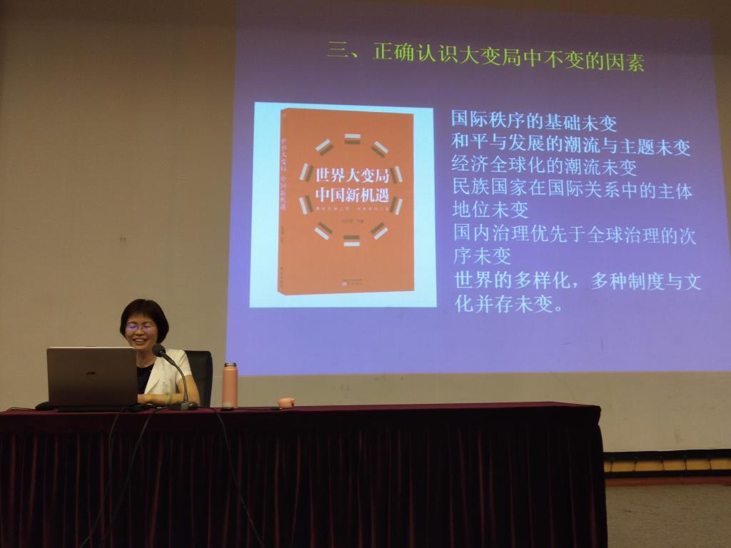 左凤荣教授从世界面临百年未有之大变局、中国与世界关系的深刻变化、正确认识大变局中不变的因素等三个方面进行讲述,全面阐述近年来特别是新冠肺炎疫情以后世界格局的深刻变化,深刻揭示了中国与世界各国,特别是与美国、俄罗斯、欧盟、日本以及印度等大国间关系的复杂多变,最后总结指出国际形势中的变与不变,中国当前及今后的基本外交趋势。即“当前和今后一个时期,我国发展仍然处于重要战略机遇期,但机遇和挑战都有新的发展变化。当今世界正经历百年未有之大变局,新一轮科技革命和产业变革深入发展,国际力量对比深刻调整,和平与发展仍然是时代主题,人类命运共同体理念深入人心”。左凤荣教授在讲座中旁征博引,引经据典,辩证的思维方式以及扎实的学术功底让台下的师生受益匪浅,赢得阵阵掌声。(撰稿:田艳天;摄影:马立智)